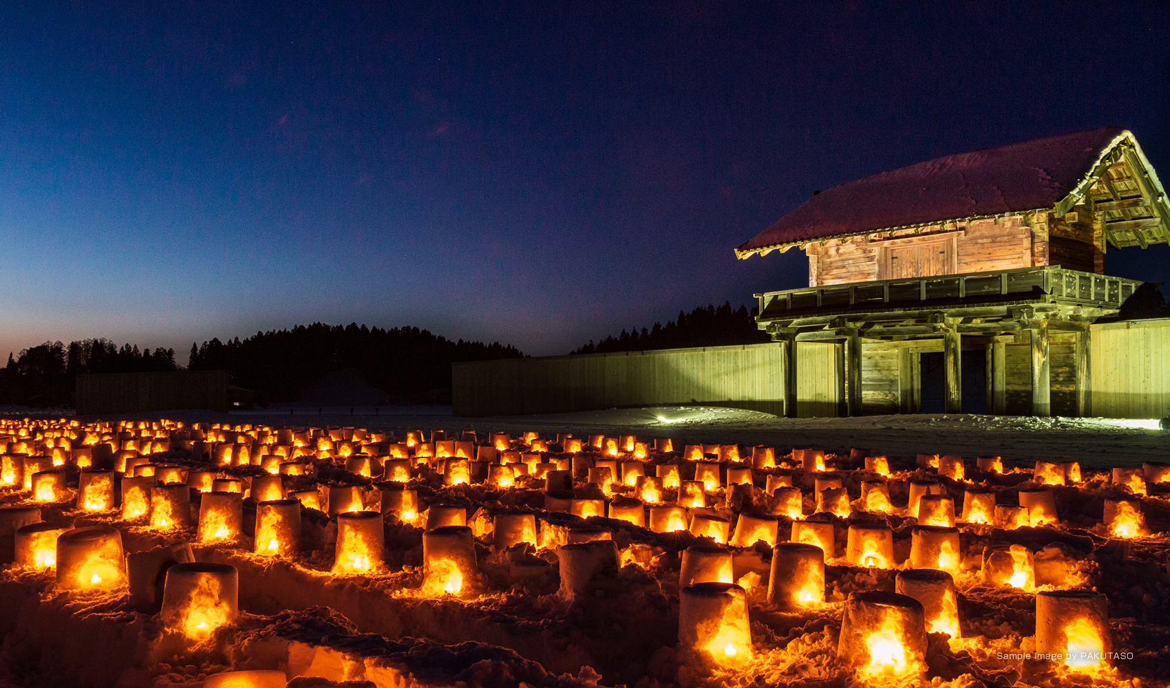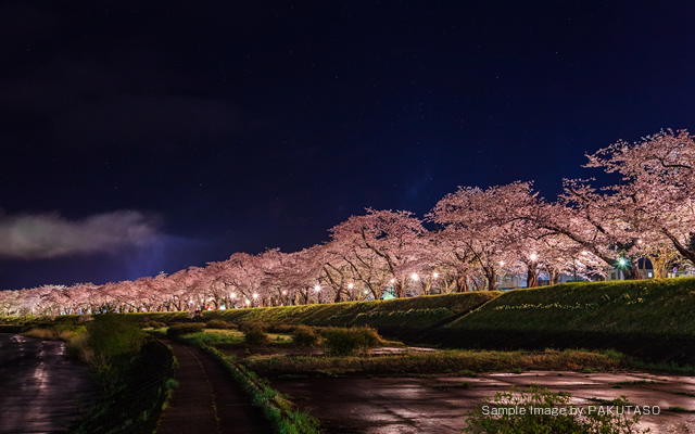 スライダー使用素材: 夜景、 夜桜、 竹灯籠、 天の川、 払田柵、 仙丈ヶ岳